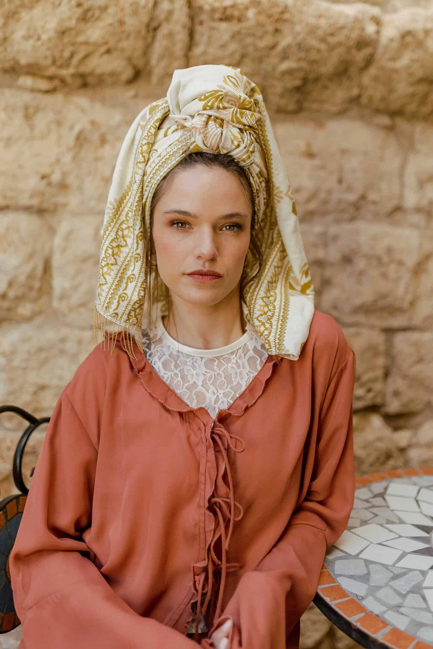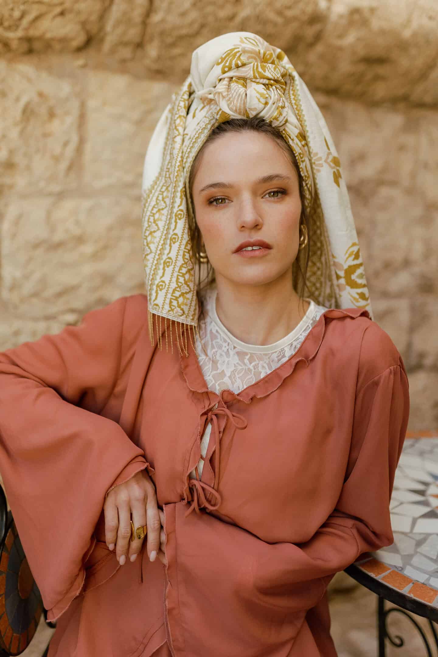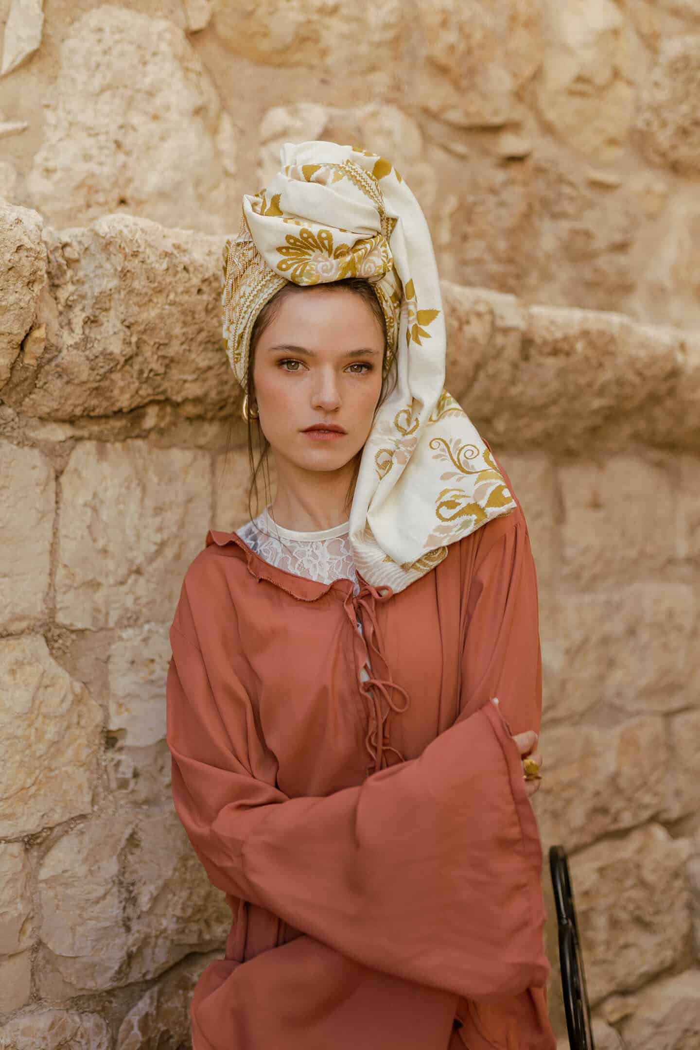 פיתוחים ועיטורים יפייפים ומהפנטים בגוונים הכי נכונים ומחמיאים, חרדל זהב, ורוד עדין על רקע שמנת גוון חם.