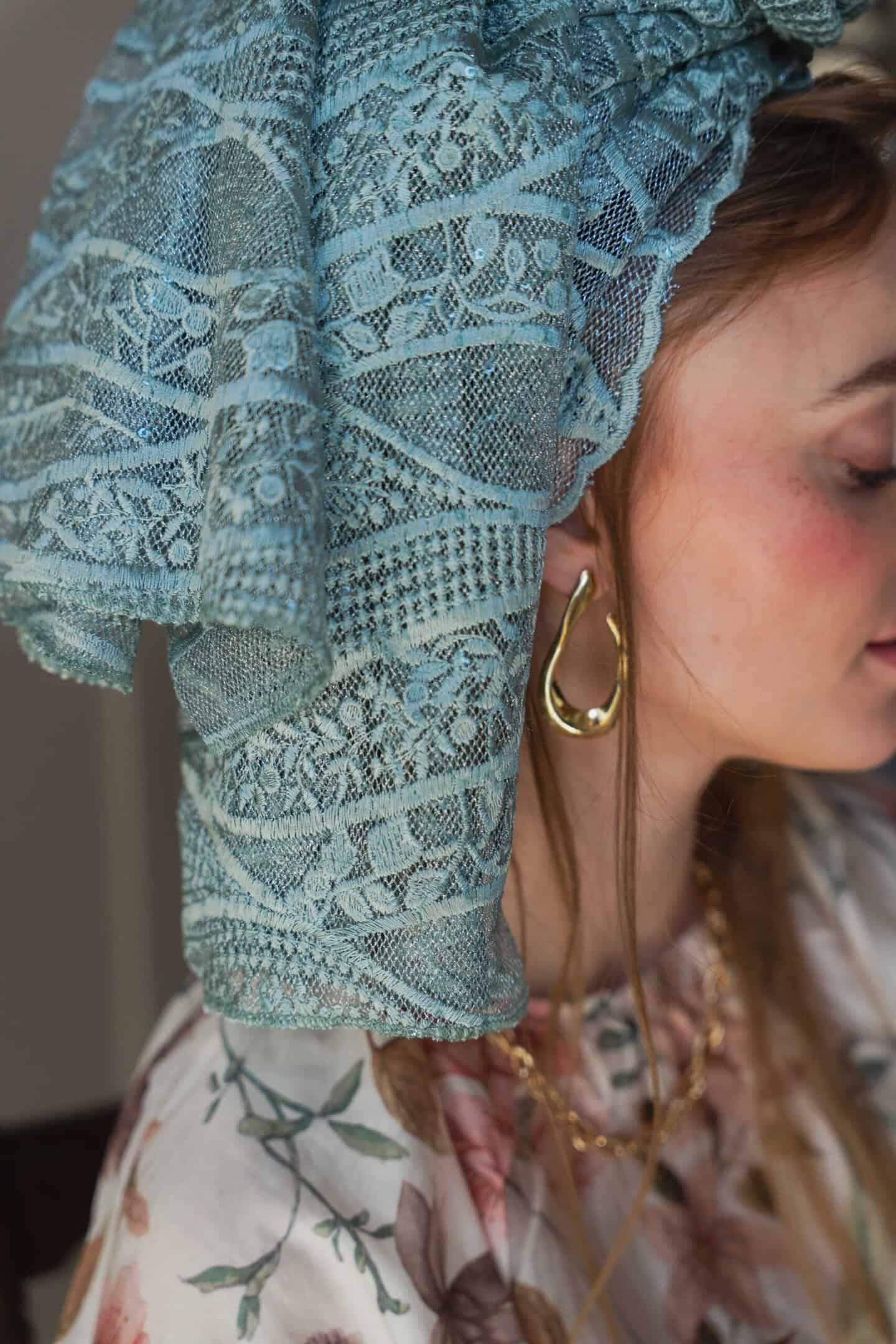 מלכות והדר של מטפחת. בד רקמה שזור ניצנוץ.