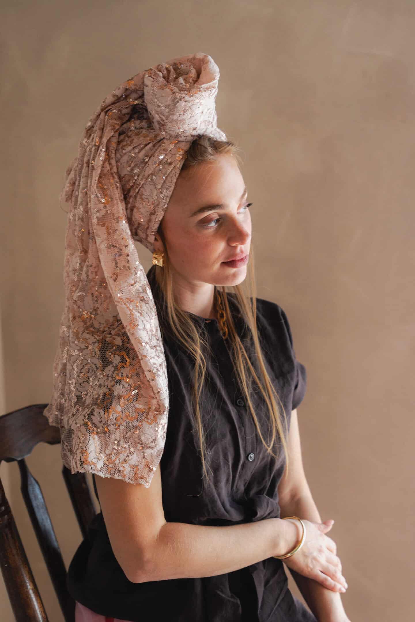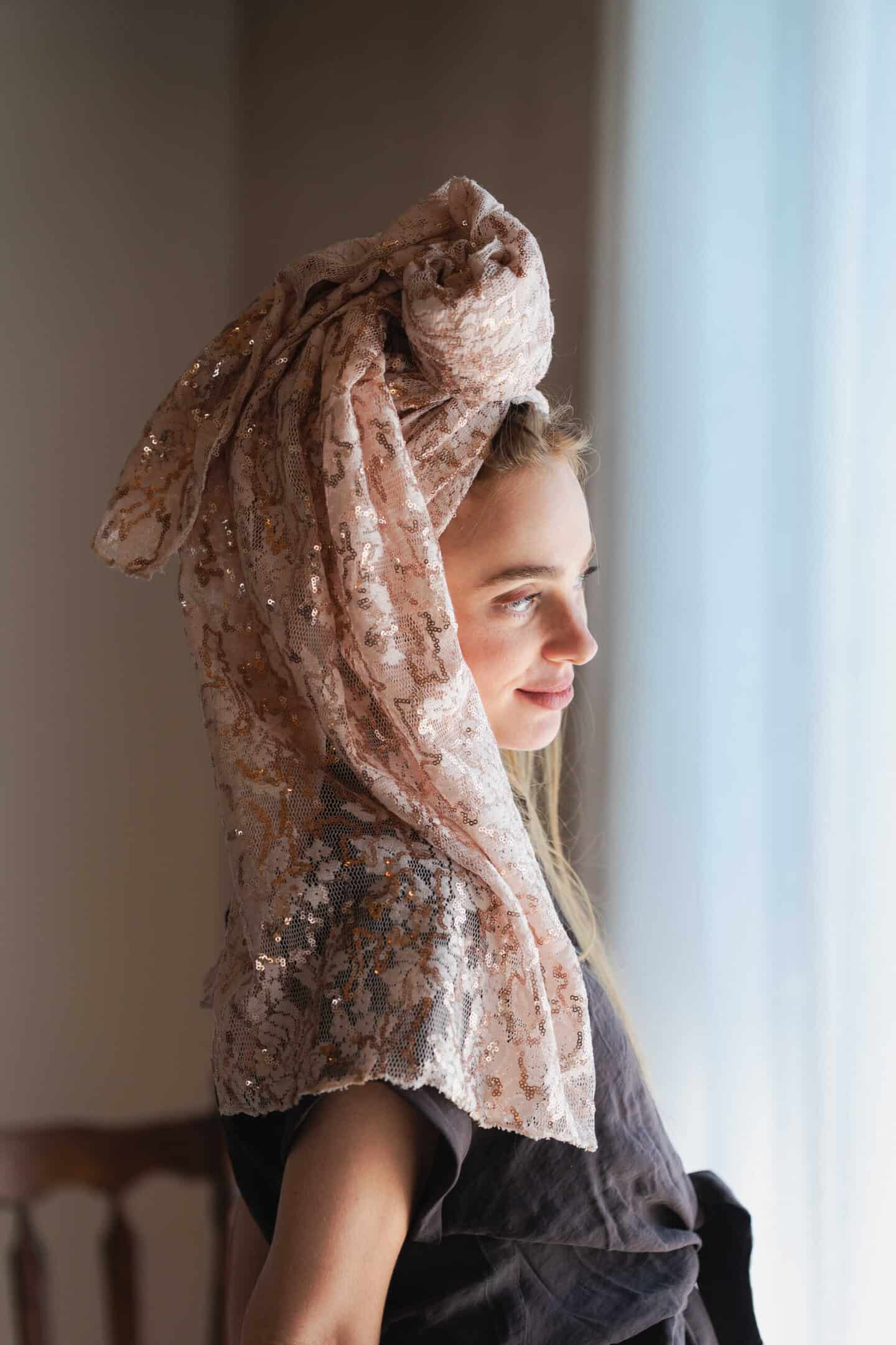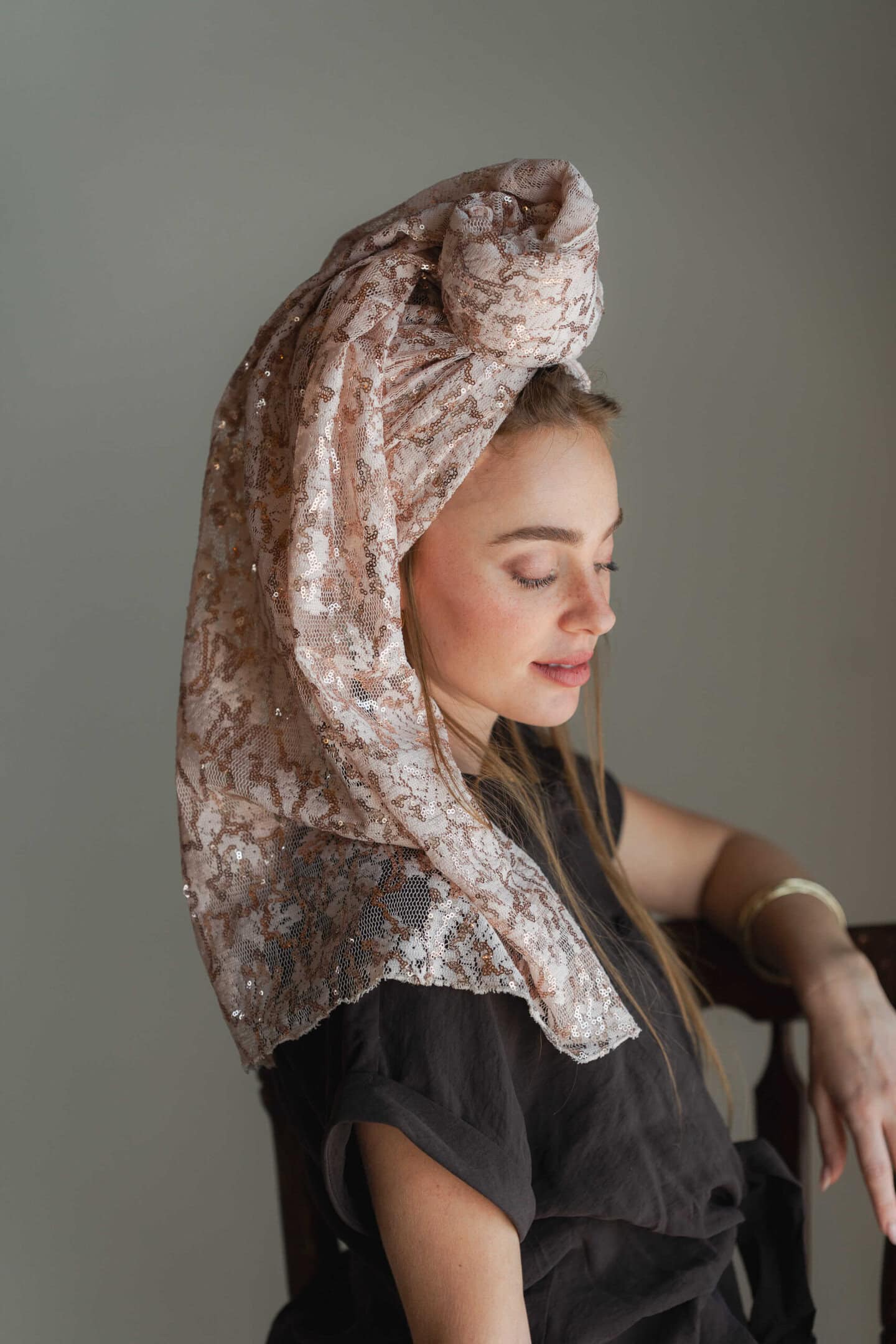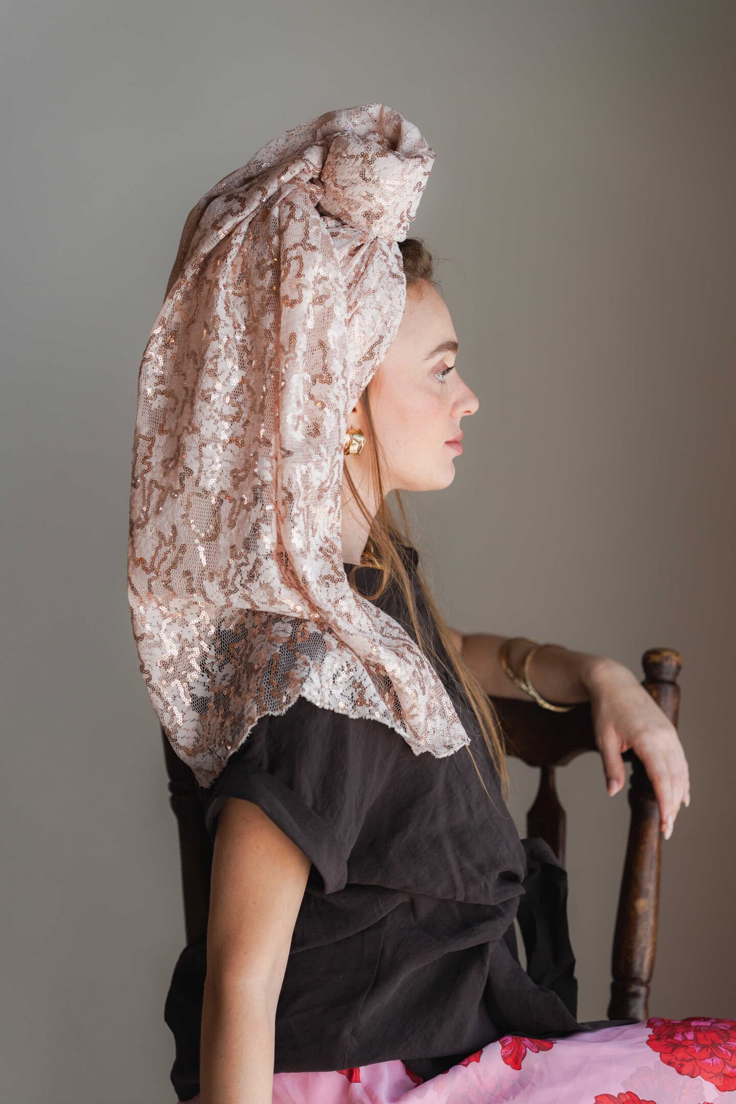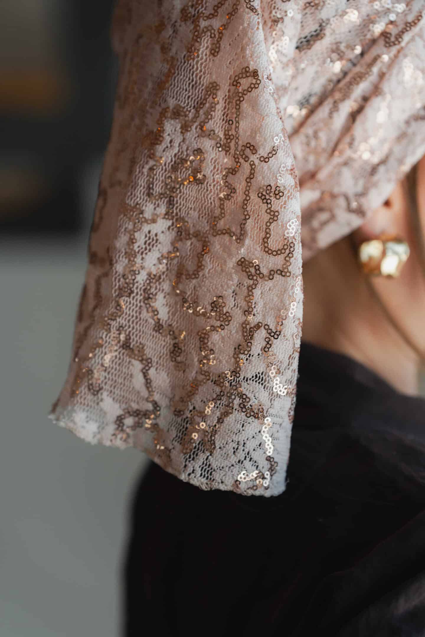 מטפחת רקמת תחרה צרובה בפאייט.